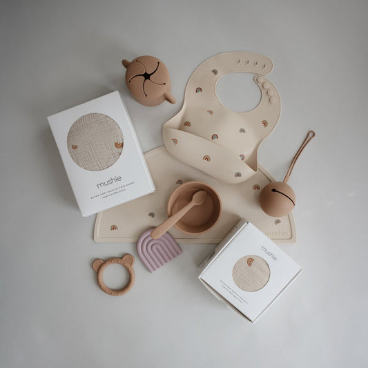 MUSHIE SILICONE MAT - POWDER PINK CONFETTI
